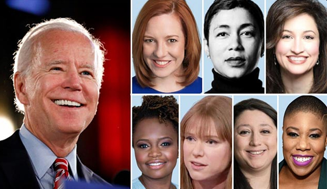Lo staff della comunicazione della futura Casa Bianca, in particolare, sarà composto per la prima volta esclusivamente da donne: a capo della segreteria stampa, che rappresenta il presidente nelle conferenze e gestisce i rapporti con i media, ci sarà Jennifer Psaki, 41 anni, già direttrice della comunicazione di Barack Obama, ruolo che invece spetterà a Kate Bedingfield, 39 anni, già vicedirettrice del comitato elettorale di Biden. Le rispettive vice saranno Karine Jean Pierre e Pill Tobar. A gestire la comunicazione della vice presidente Kamala Harris saranno invece Ashley Etienne, sua direttrice della comunicazione (dopo aver affiancato nello stesso ruolo la speaker del Partito Democratico Nancy Pelosi) e Symone Sanders, sua portavoce, già consigliera del futuro presidente. Infine, Elizabeth Alexander, portavoce di Joe Biden quando era vice, è stata scelta come responsabile della comunicazione della prossima first lady, Jill Biden.